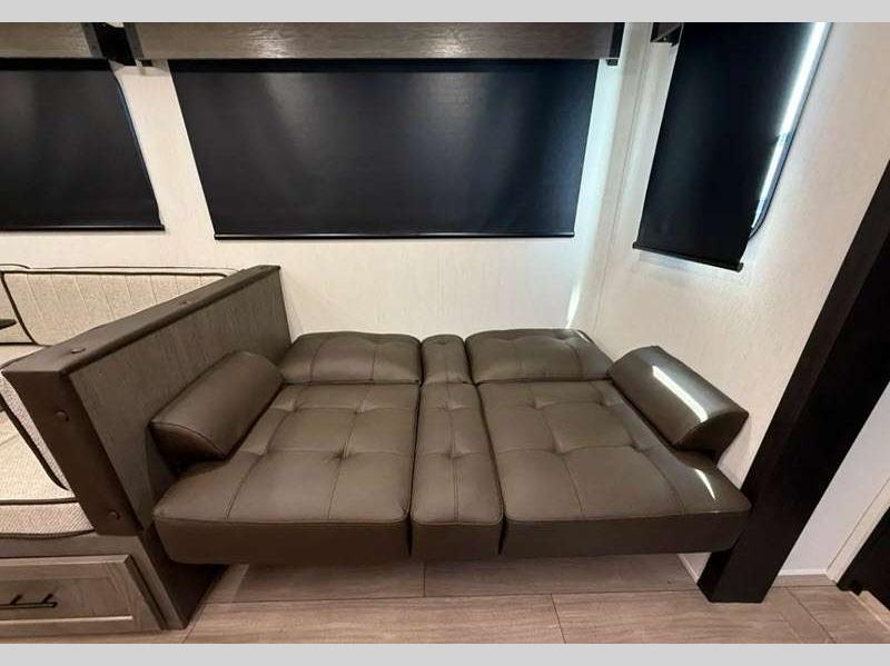 Sleeps 8 Slides 3 Length 37 ft 2 in Ext Width 8 ft Ext Height 11 ft 2 in Hitch Weight 1135 lbs GVWR 10665 lbs Dry Weight 8063 lbs Cargo Capacity 2602 lbs Fresh Water Capacity 81 gals Grey Water Capacity 70 gals Black Water Capacity 70 gals Number Of Bunks 2 Available Beds Queen Refrigerator Type 12V Residential Style Refrigerator Size 10 cu ft Cooktop Burners 3 Number of Awnings 1 Water Heater Type On Demand Tankless AC BTU 15000 btu TV Info LED TV Awning Info 20' Axle Count 2 Shower Type Radius Electrical Service 50 amp Solar Wattage 100 watts Similar Floorplans