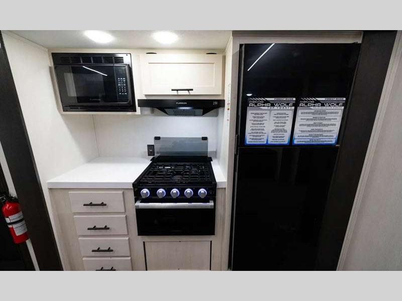 Forest River Cherokee Alpha Wolf travel trailer 25RB highlights: Outside Kitchen ... more about Cherokee Alpha Wolf 25RB