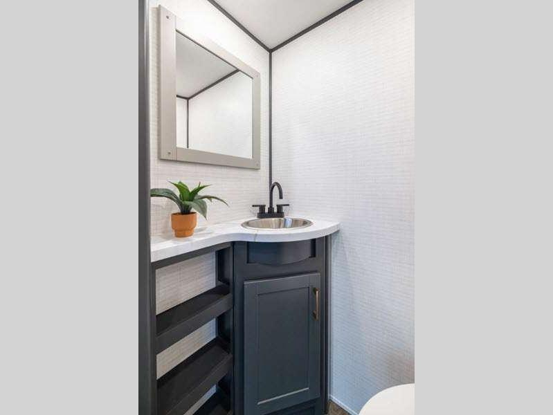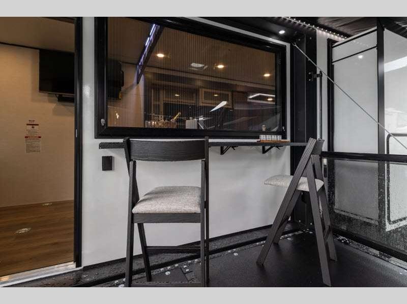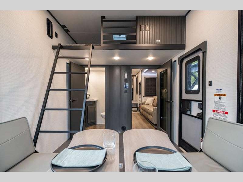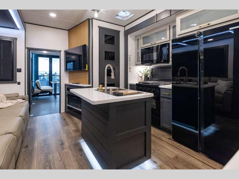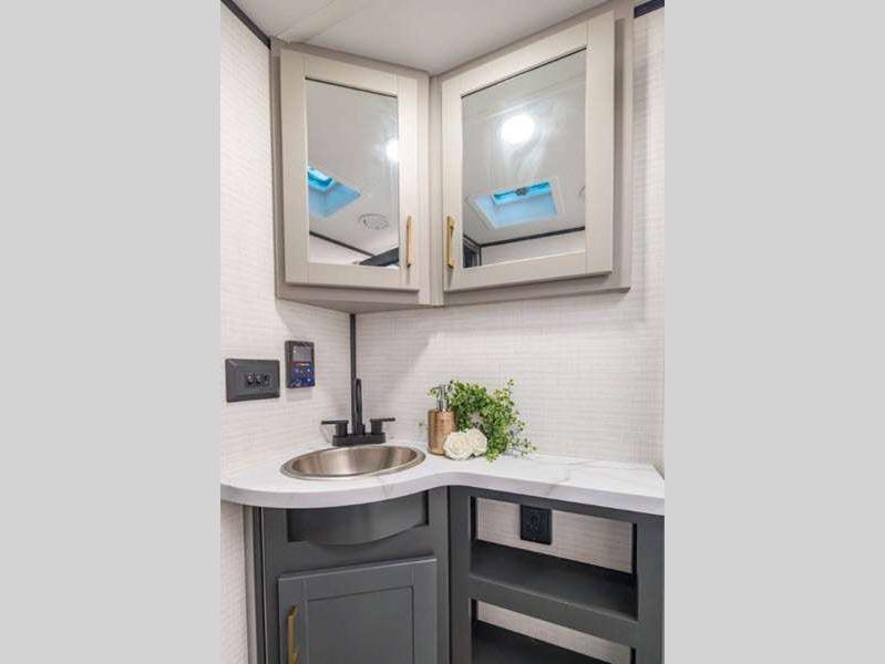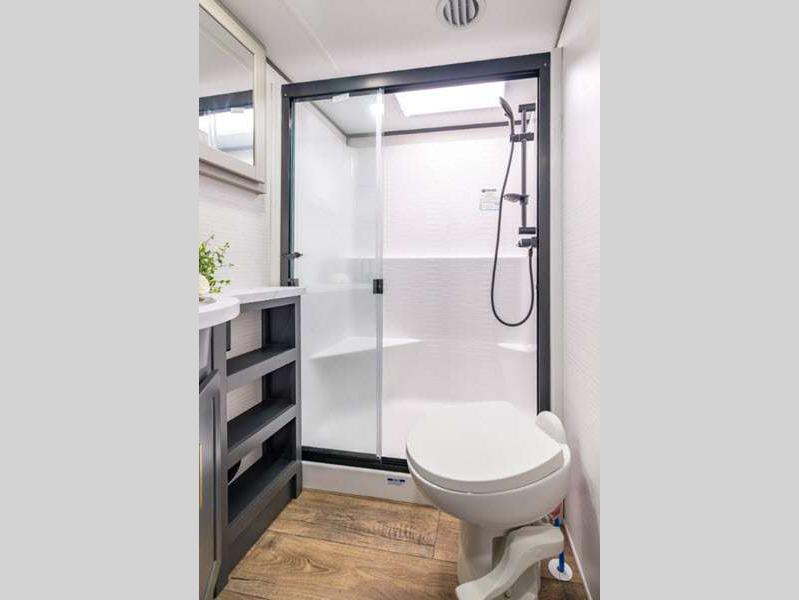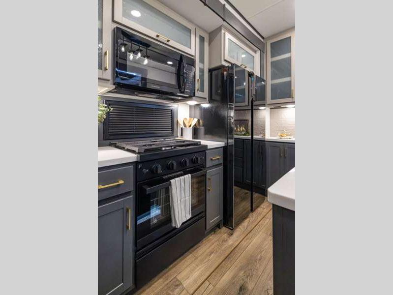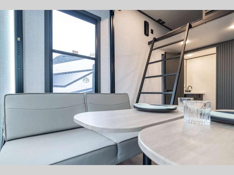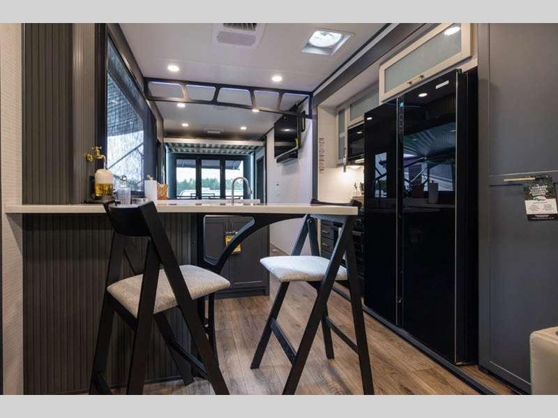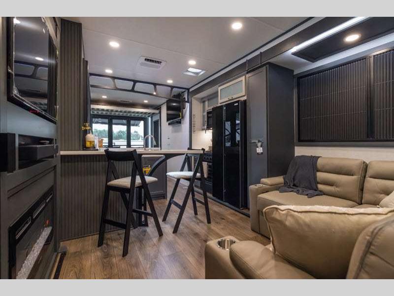 These toy haulers are 3/4 ton or 1 ton towable, and the additional height and width provides extra room for your toys to come along too. The MORryde CRE3000 suspension enhancement makes towing smooth and the hydraulic leveling will have you set up at camp in no-time. The contemporary interior design will make your space feel a little more like home and the Congoleum stain-resistant vinyl flooring is perfect for a toy hauler with dirt, gas, and oil being brought in.