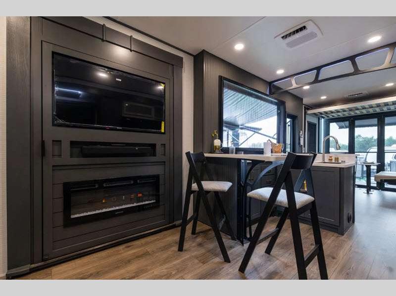 Sleeps 7 Slides 3 Length 45 ft 6 in Ext Width 8 ft 6 in Ext Height 13 ft 4 in Hitch Weight 3480 lbs Dry Weight 16949 lbs Cargo Capacity 4051 lbs Fresh Water Capacity 150 gals Grey Water Capacity 123 gals Black Water Capacity 32 gals Tire Size 16" Generator 6.0 NPS Fuel Capacity 40 gals Number Of Bunks 1 Available Beds King Refrigerator Type 12V Residential Refrigerator Size 16 cu ft Cooktop Burners 3 Shower Size 30" x 48" Number of Awnings 2 Garage Size 13 ft LP Tank Capacity 30 lbs AC BTU 54000 btu TV Info LR 55" TV, Garage 50" TV, Patio 50" TV Awning Info 10' and 20' Electric w/LED Lights Axle Count 2 Washer/Dryer Available Yes Number of LP Tanks 2 Shower Type Tub/Shower Combo Electrical Service 50 amp Solar Wattage 200 watts Similar Floorplans