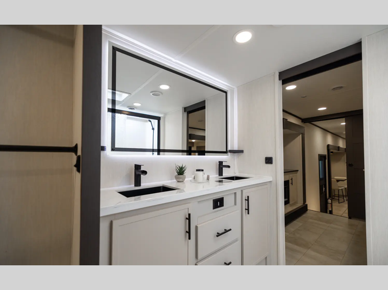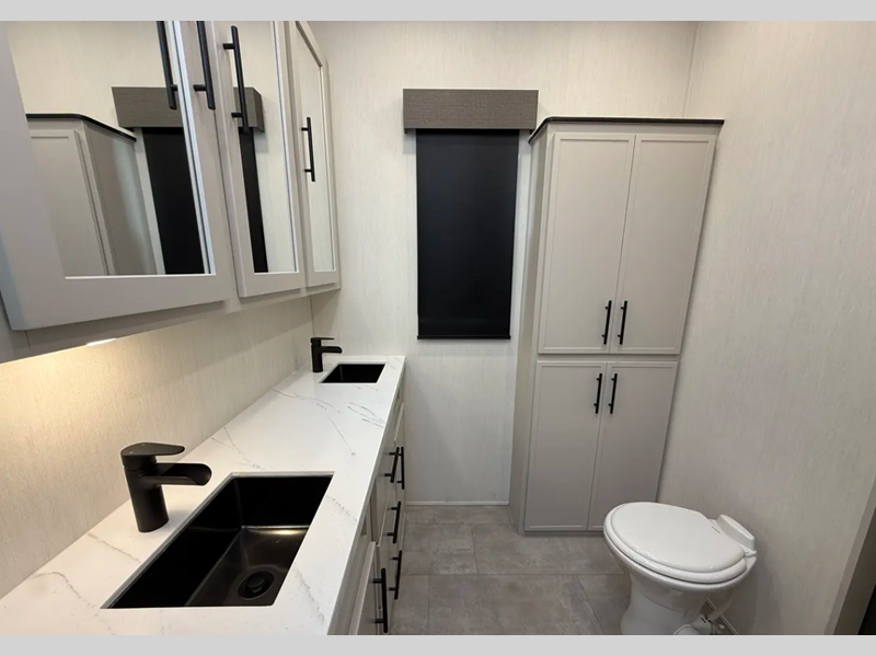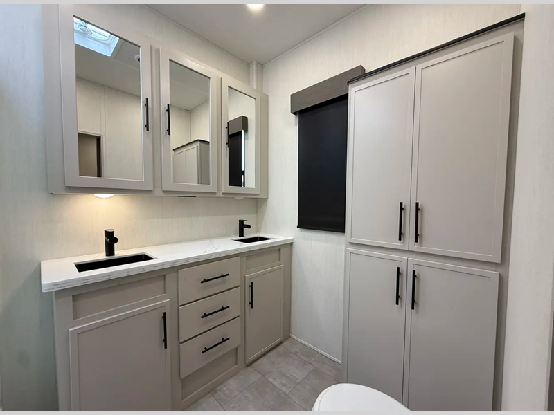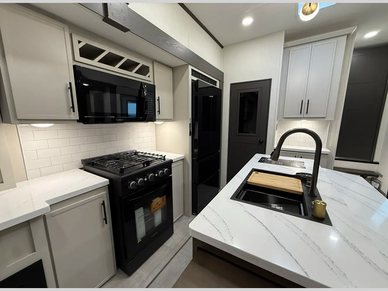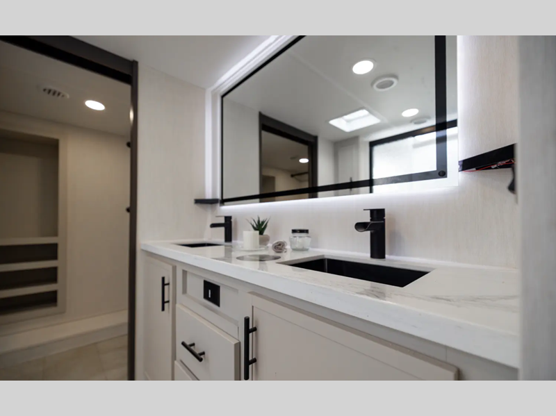 - Heat Rated Solid Surface Countertops Throughout the Coach