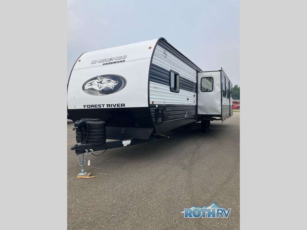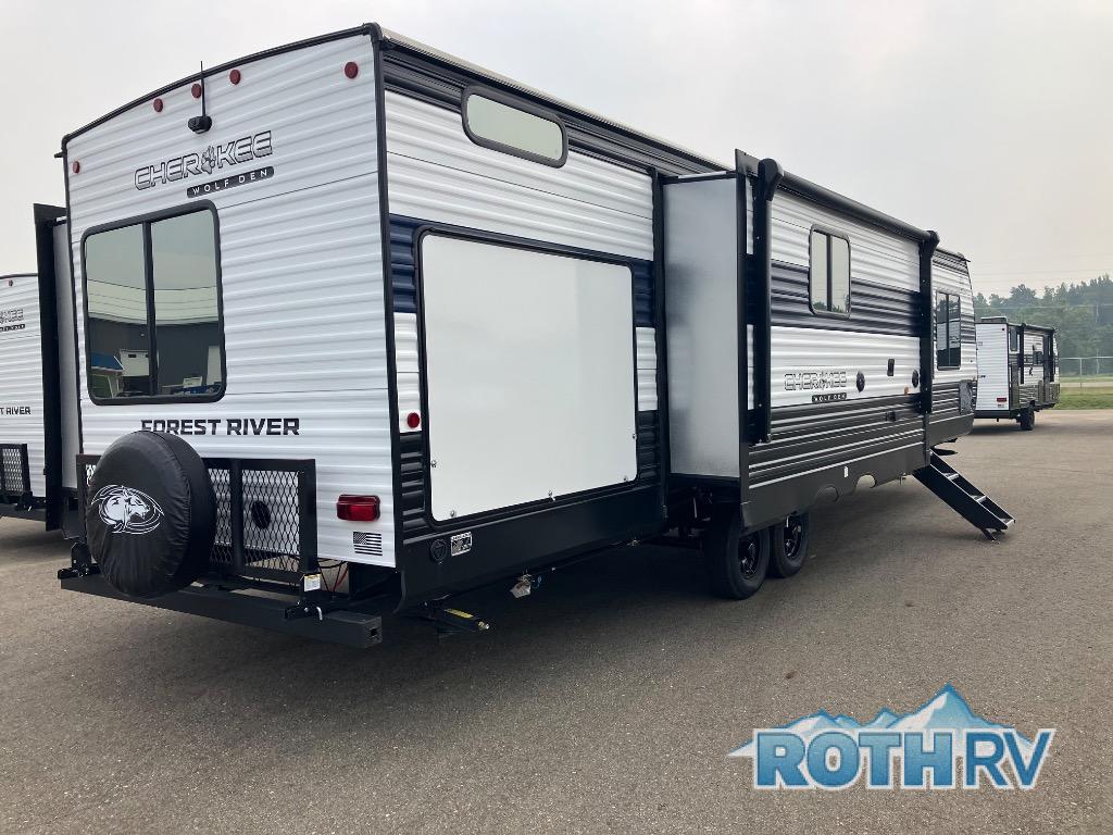If the open road is calling your name, then answer it with one of these Forest River Cherokee Wolf Den travel trailers! They are built with an aerodynamic smooth radius front profile, a one-piece walkable decked roof, and a Cherokee exclusive stable step with oversized landing. There are also four stabilizer jacks outside, along with ladder prep, a premium wheel package and exclusive solar thermo controlled reflective tinted safety glass windows. The seamless countertops inside will be easy to keep clean, and the premium bedding will have you feeling right at home. There are also USB-C charging stations to keep your electronics charged and ready to go, plus many more stand-out features!