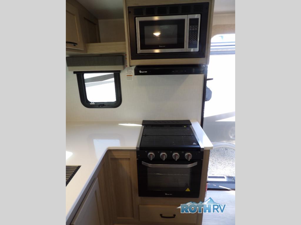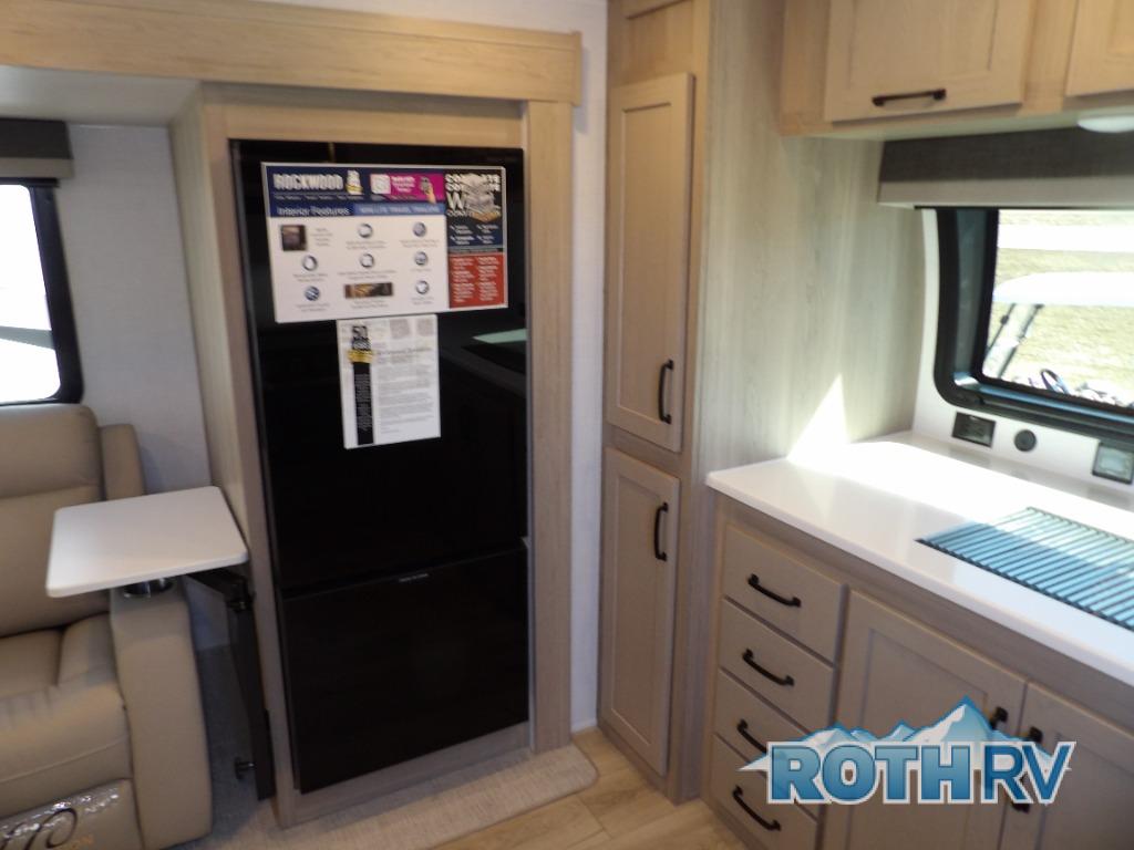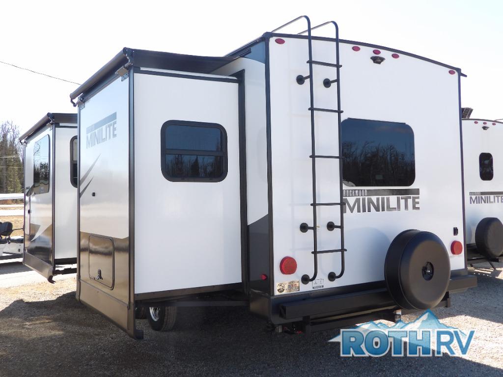 Each Rockwood Mini Lite travel trailer by Forest River is constructed with a fully laminated one-piece walkable roof, sleek frameless windows, and a six-sided full aluminum frame for strength and durability. The 12V thermostatically controlled heated tanks, plus radiant foil in the underbelly and slide out floors will allow you to camp well into the colder months, and the 200W roof solar panel will be perfect for a little off-gridding. Each model includes solid surface kitchen countertops, solid wood cabinet doors, night roller shades, plus many more interior features. Having an AIR 360+ omnidirectional antenna with WiFi prep on board gives you the option to get some work done if it's needed, and the power tongue jack provides hassle-free set up, so you can enjoy more time relaxing!