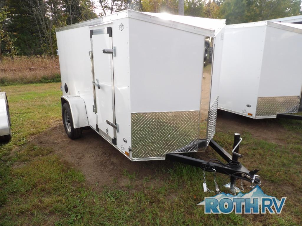 Come choose a V-Series cargo trailer which offers better aerodynamics plus a bit more storage in each model. These models range in size from a 4x6 single axle all the way to an 8x20 tandem axle. Each model features exterior aluminum fenders, a galvanized roof, and a Z-coated undercoated frame so you know you're getting a cargo trailer that will last years. You can also customize your trailer with one of the many full-color decals. These cargo trailers were built so you can travel anytime of day with the Clear Lens LED clearance lights and the LED strip tail lights. With plenty of packages to choose from you can easily customize your trailer to your specific hauling needs!