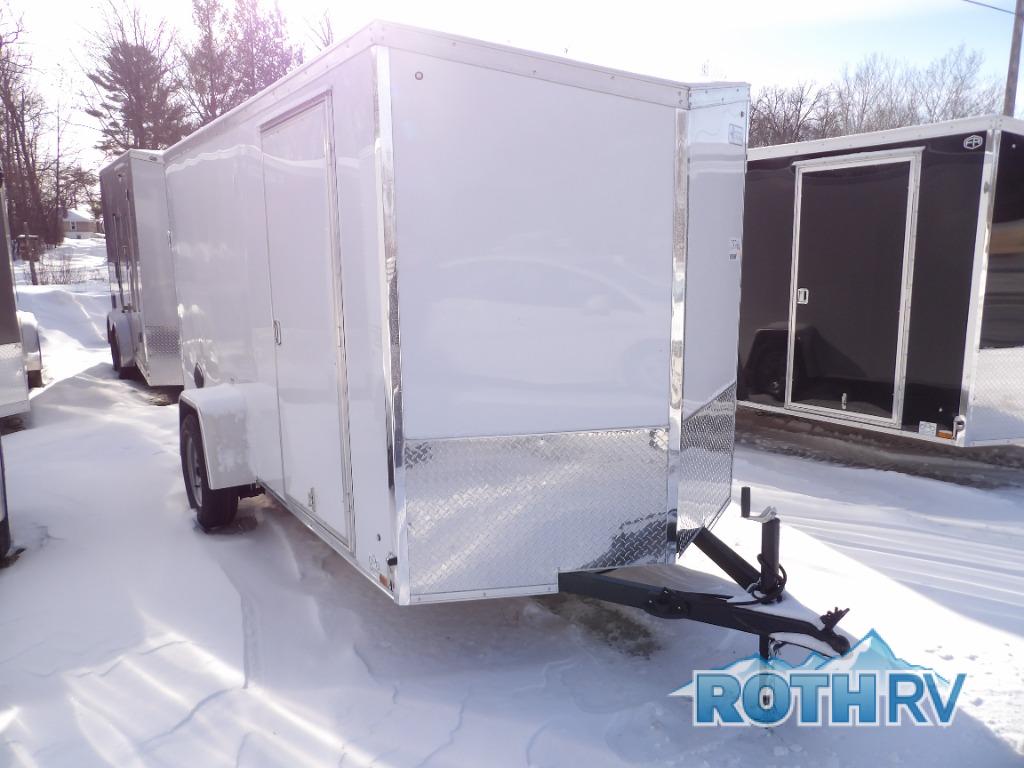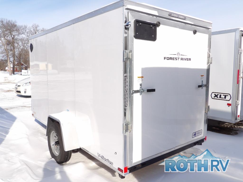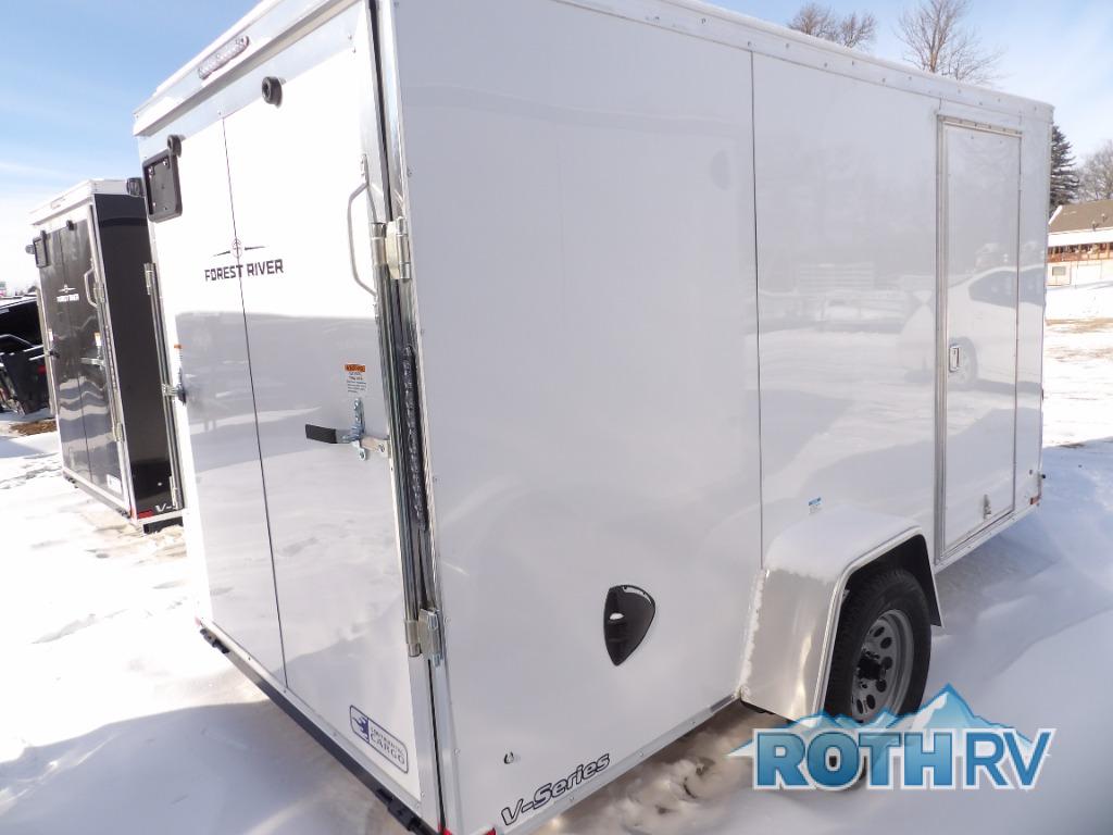 Come choose a V-Series cargo trailer which offers better aerodynamics plus a bit more storage in each model. These models range in size from a 4x6 single axle all the way to an 8x20 tandem axle. Each model features exterior aluminum fenders, a galvanized roof, and a Z-coated undercoated frame so you know you're getting a cargo trailer that will last years. You can also customize your trailer with one of the many full-color decals. These cargo trailers were built so you can travel anytime of day with the Clear Lens LED clearance lights and the LED strip tail lights. With plenty of packages to choose from you can easily customize your trailer to your specific hauling needs!