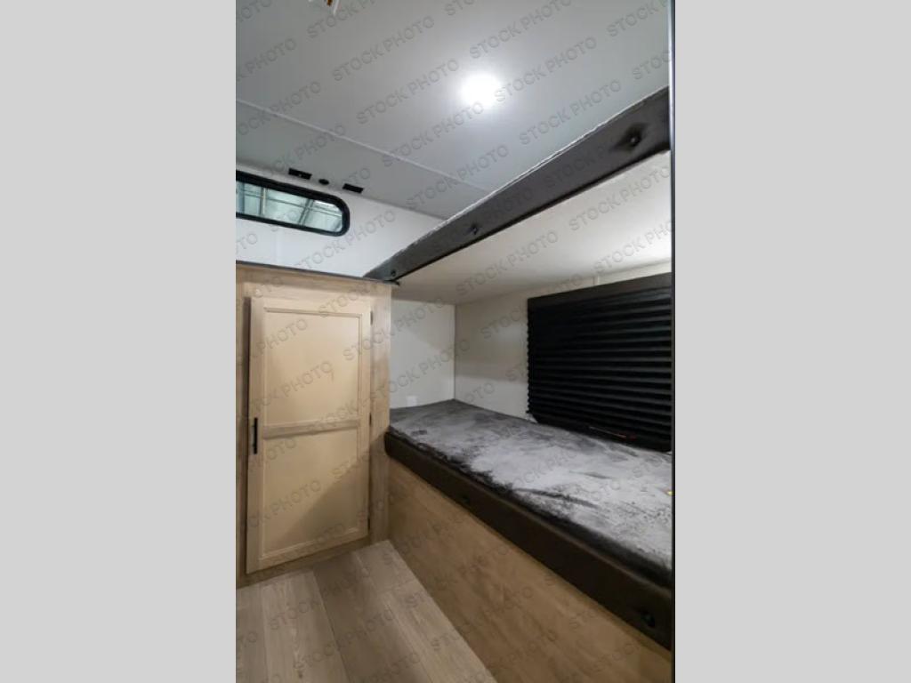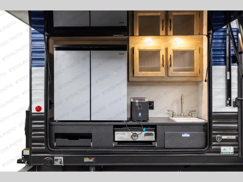 Your larger family will love spending weekends away with this Cherokee Grey Wolf travel trailer as their home away from home. This model offers lots of sleeping space with three bunk beds in the rear private bunkhouse. In the front, there is a master suite with a wardrobe beside RV king bed, and it even has private access to the dual-entry bath. The two entry doors will make accessing the trailer easy for everyone, and you will appreciate the abundant storage throughout this unit including large overhead cabinets, a spacious pantry, and numerous outside storage compartments for all of your outdoor gear. There's even an outside bar & grill!