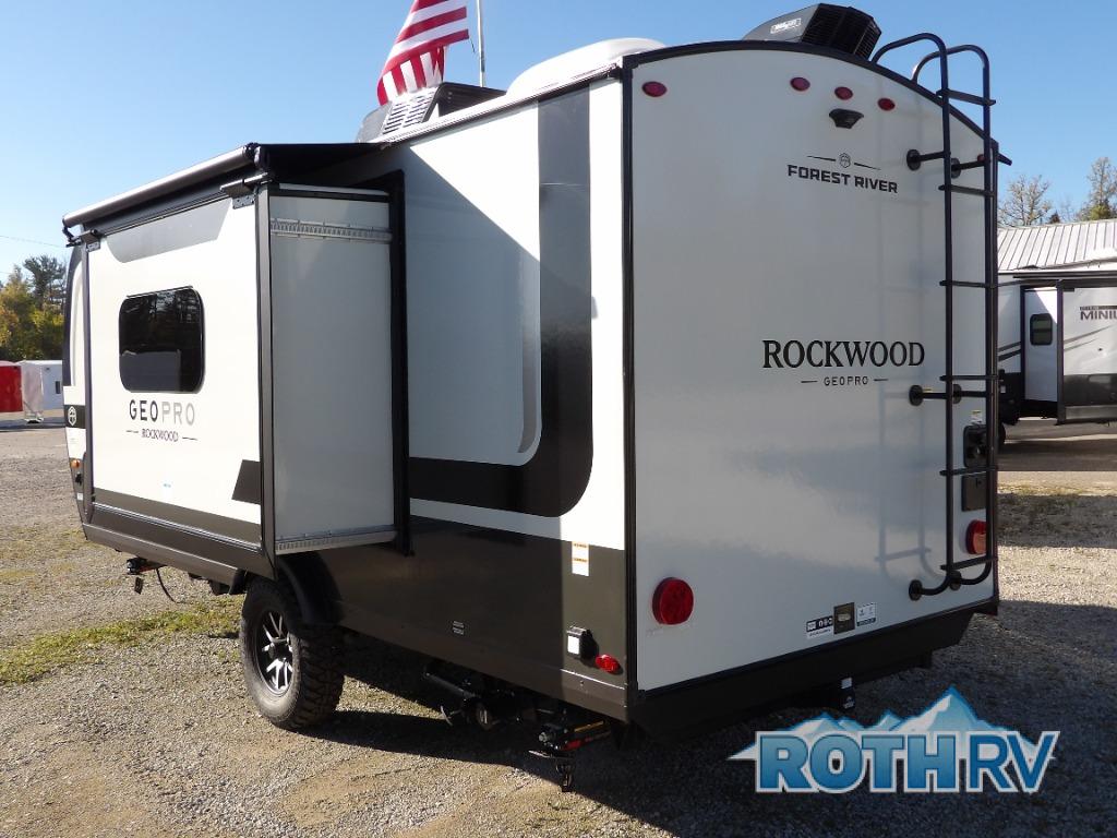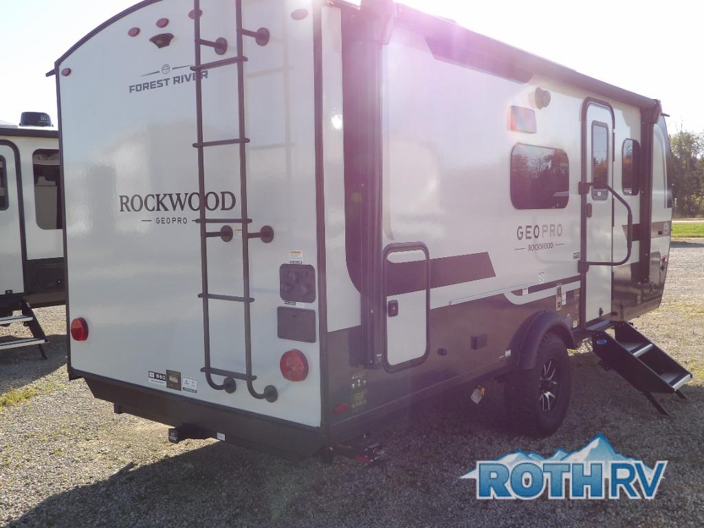 With any Rockwood GEO Pro travel trailer by Forest River you will enjoy easy towing, durable construction, and off-road capabilities with larger laminated roof! Each model is constructed with complete composite wall construction for added strength and durability, and Dexter® axles that will make towing easier than ever. Inside, you'll find sleek back up camera prep for added security, a refrigerator and a microwave, plus many other interior amenities that will make you feel at home on the road.
