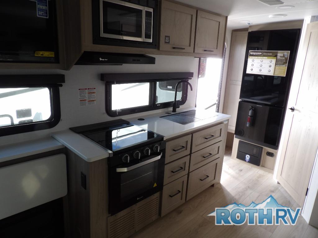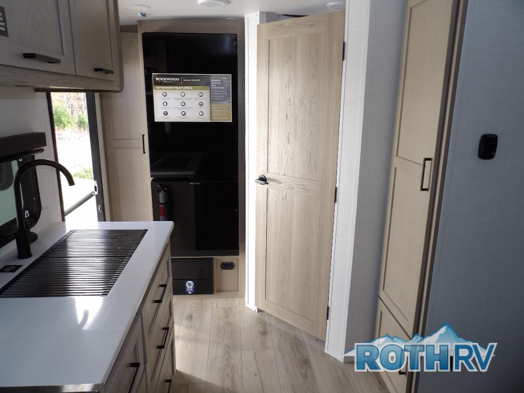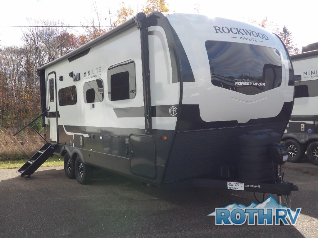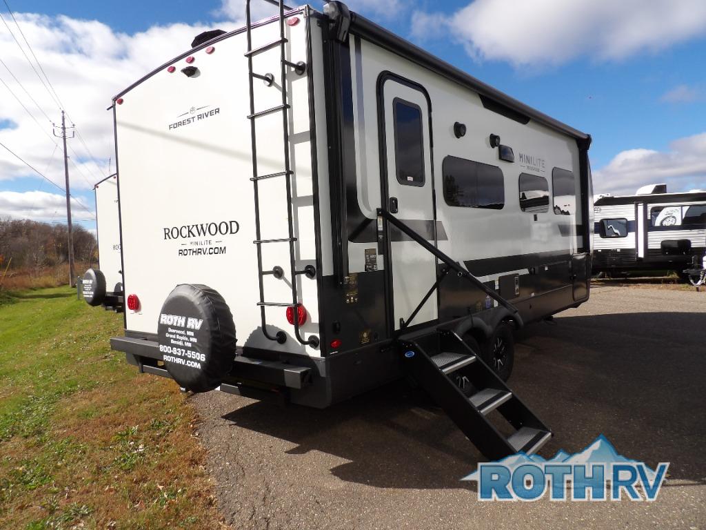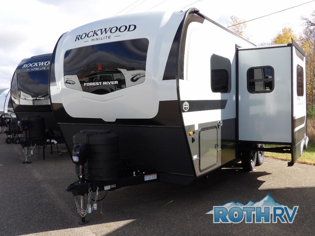 Each Rockwood Mini Lite travel trailer by Forest River is constructed with a fully laminated one-piece walkable roof, sleek frameless windows, and a six-sided full aluminum frame for strength and durability. The 12V thermostatically controlled heated tanks, plus radiant foil in the underbelly will allow you to camp well into the colder months, and the 200W roof solar panel will be perfect for a little off-gridding. Each model includes solid surface kitchen countertops, hidden hinge cabinet doors, roller shades, plus many more interior features. Having an AIR 360+ omnidirectional antenna with WiFi prep on board gives you the option to get some work done if it's needed, and the power tongue jack provides hassle-free set up, so you can enjoy more time relaxing!