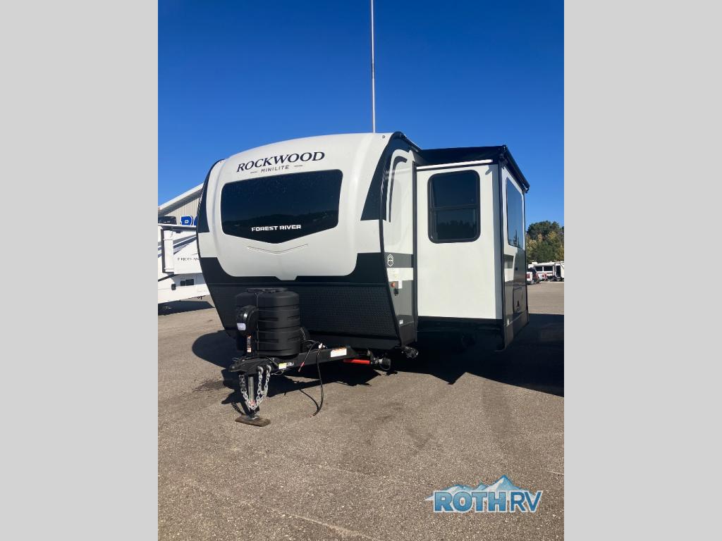 Each Rockwood Mini Lite travel trailer by Forest River is constructed with a fully laminated one-piece walkable roof, sleek frameless windows, and a six-sided full aluminum frame for strength and durability. The 12V thermostatically controlled heated tanks, plus radiant foil in the underbelly will allow you to camp well into the colder months, and the 200W roof solar panel will be perfect for a little off-gridding. Each model includes solid surface kitchen countertops, hidden hinge cabinet doors, roller shades, plus many more interior features. Having an AIR 360+ omnidirectional antenna with WiFi prep on board gives you the option to get some work done if it's needed, and the power tongue jack provides hassle-free set up, so you can enjoy more time relaxing!