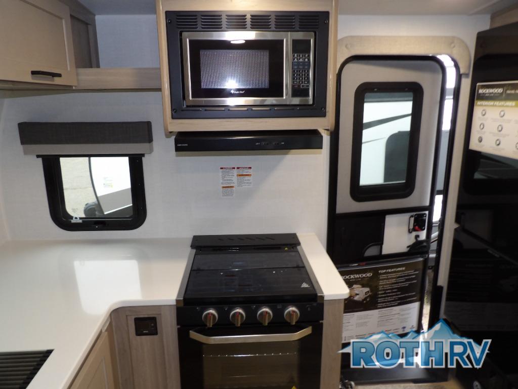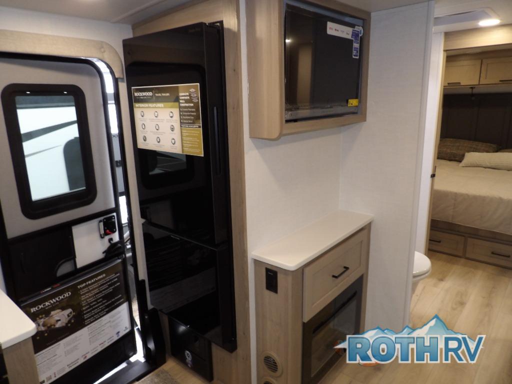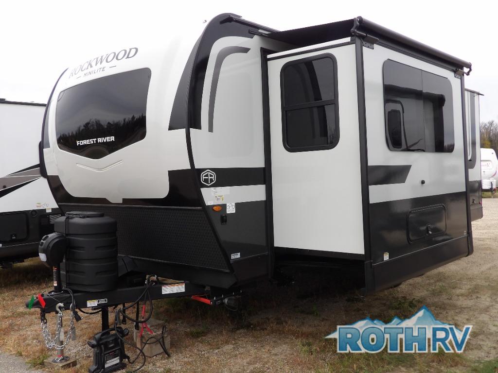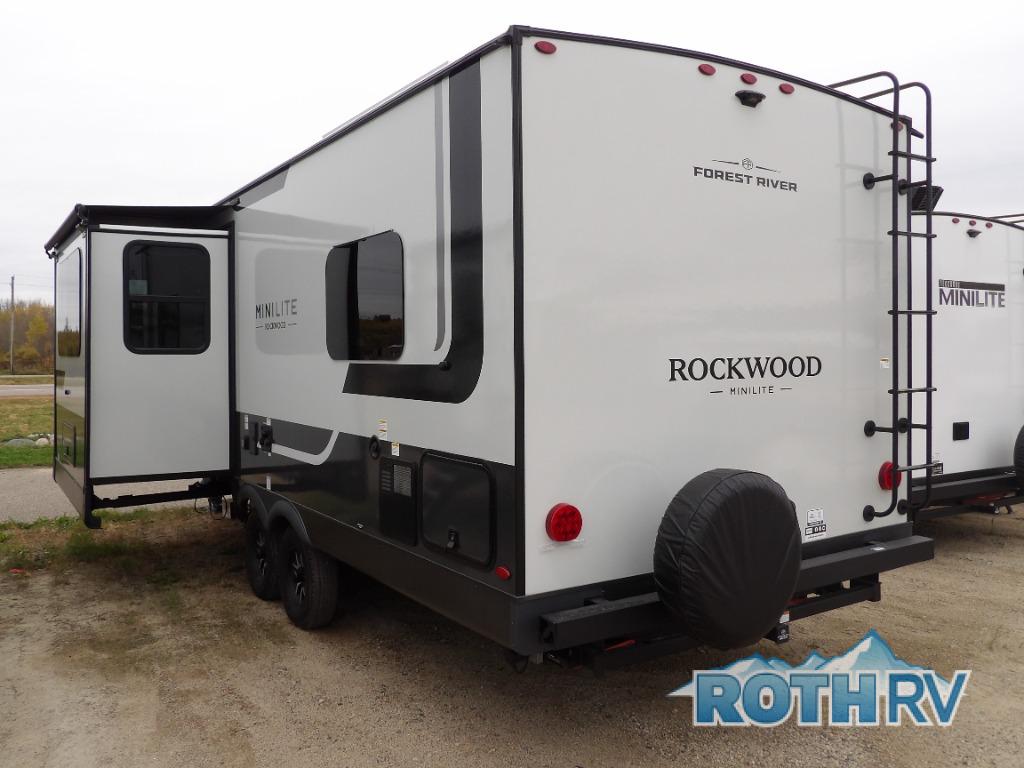 Each Rockwood Mini Lite travel trailer by Forest River is constructed with a fully laminated one-piece walkable roof, sleek frameless windows, and a six-sided full aluminum frame for strength and durability. The 12V thermostatically controlled heated tanks, plus radiant foil in the underbelly will allow you to camp well into the colder months, and the 200W roof solar panel will be perfect for a little off-gridding. Each model includes solid surface kitchen countertops, hidden hinge cabinet doors, roller shades, plus many more interior features. Having an AIR 360+ omnidirectional antenna with WiFi prep on board gives you the option to get some work done if it's needed, and the power tongue jack provides hassle-free set up, so you can enjoy more time relaxing!