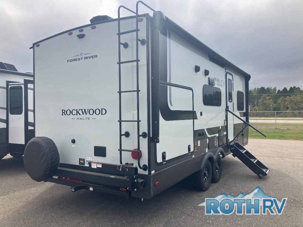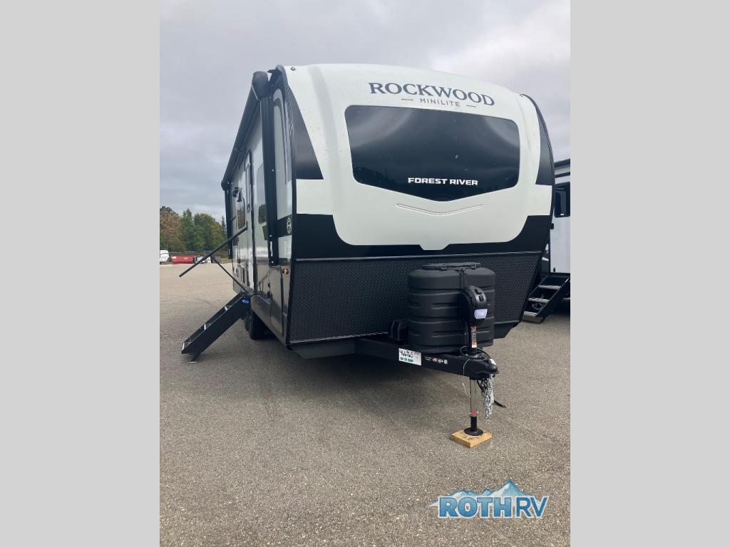 Each Rockwood Mini Lite travel trailer by Forest River is constructed with a fully laminated one-piece walkable roof, sleek frameless windows, and a six-sided full aluminum frame for strength and durability. The 12V thermostatically controlled heated tanks, plus radiant foil in the underbelly will allow you to camp well into the colder months, and the 200W roof solar panel will be perfect for a little off-gridding. Each model includes solid surface kitchen countertops, hidden hinge cabinet doors, roller shades, plus many more interior features. Having an AIR 360+ omnidirectional antenna with WiFi prep on board gives you the option to get some work done if it's needed, and the power tongue jack provides hassle-free set up, so you can enjoy more time relaxing!