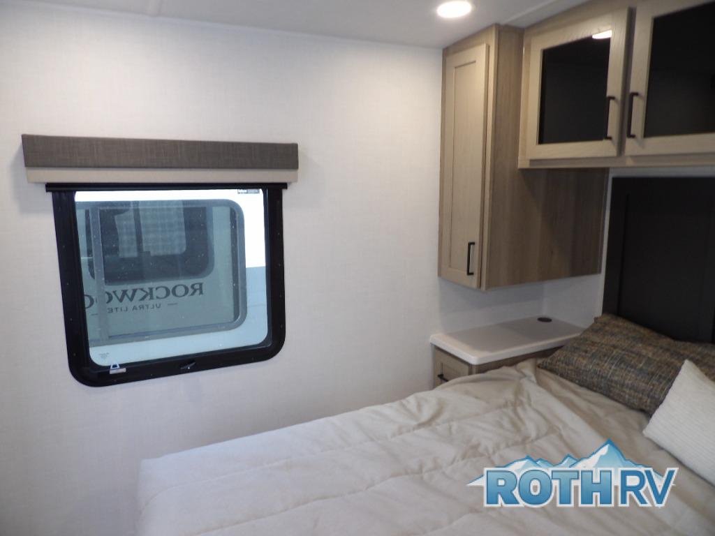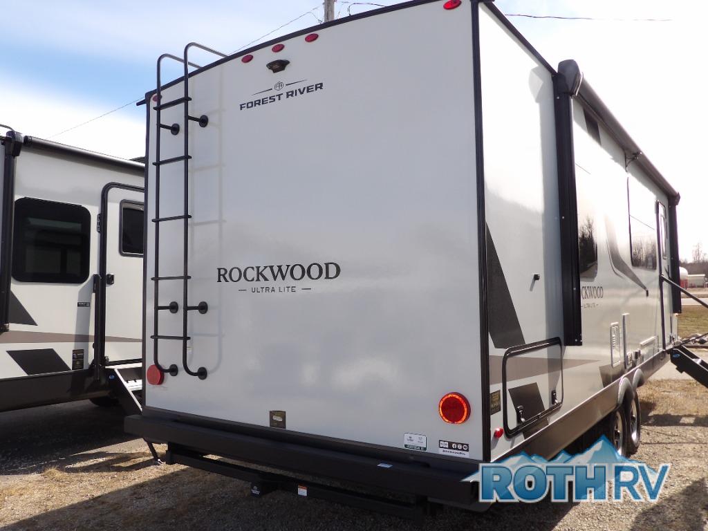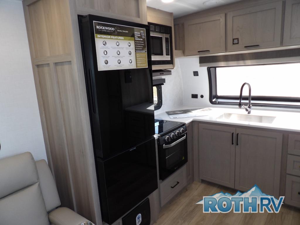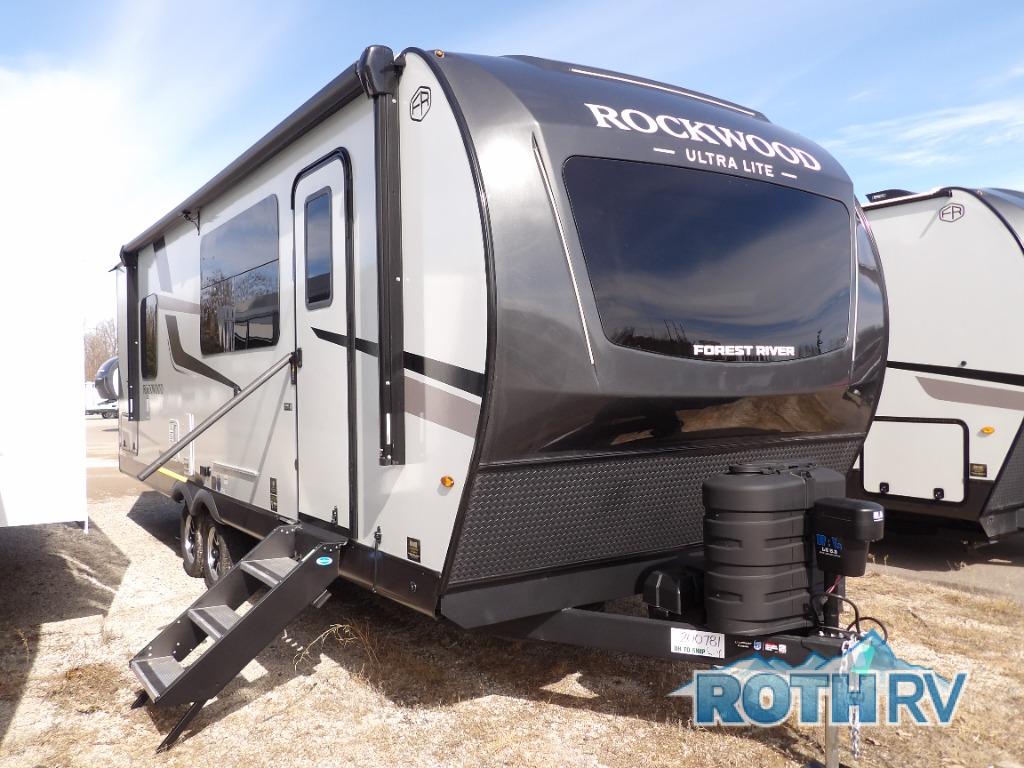 Each Rockwood Ultra Lite travel trailer by Forest River includes superior construction with a high gloss fiberglass cap, aluminum cage construction, and a power awning with LED lighting for a cozy and functional outdoor space. The torsion axle, power tongue jack will make towing smooth and hassle-free, along with the nitrogen filled, Goodyear Endurance tires and the tire pressure monitor system. Interior comforts include kitchen sink with high rise faucet, hidden hinge cabinet doors, and roller shades to name a few. Choose a Rockwood Ultra Lite travel trailer today!