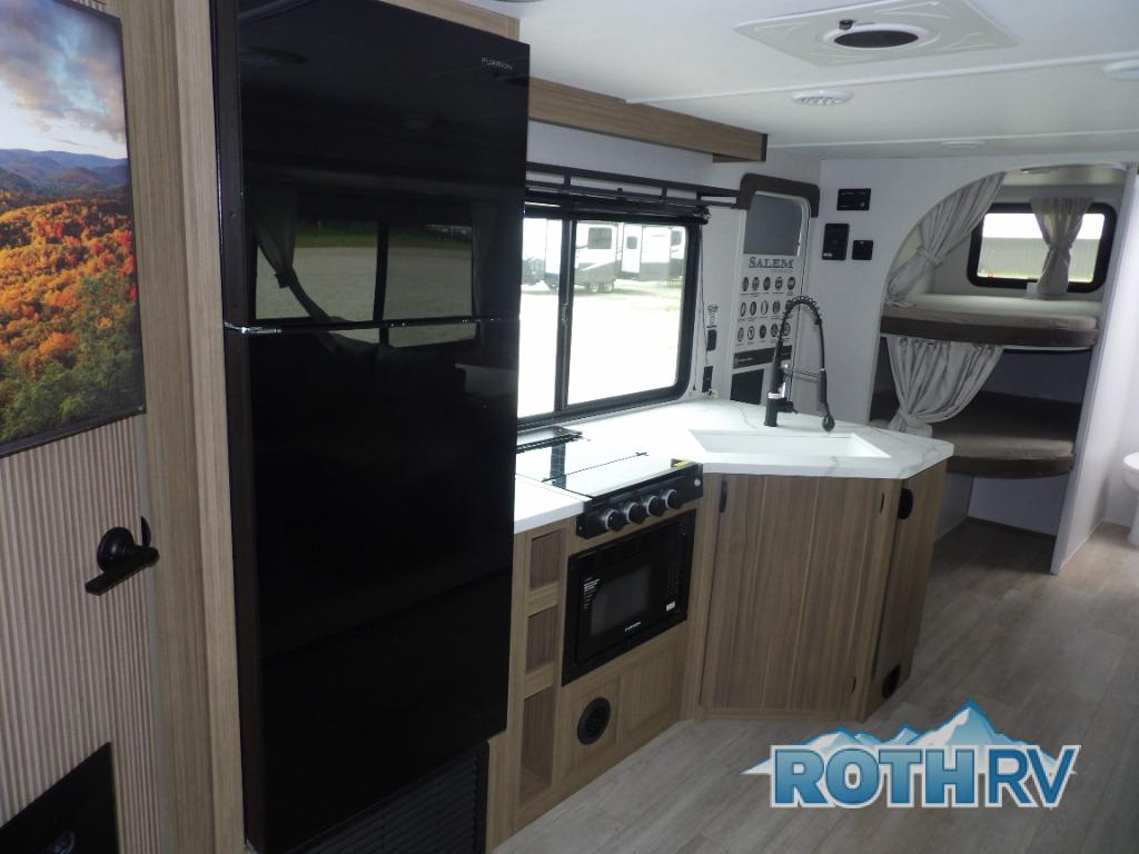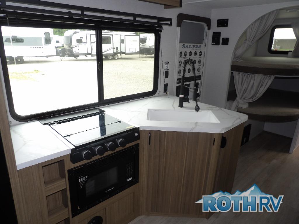 The Salem Cruise Lite travel trailers and toy haulers are value-minded units packed with great camping features! There are a variety of floorplans to choose from between two different regions. The enclosed Accessibelly will help protect against the elements and debris during transport, and the exterior retro/metal redesign is sure to be eye-catching! There are stylish roller shades inside, along with updated backsplash, elegant curtain rods and curtains, plus many more interior comforts! Choose a Salem Cruise Lite today for quality and value!