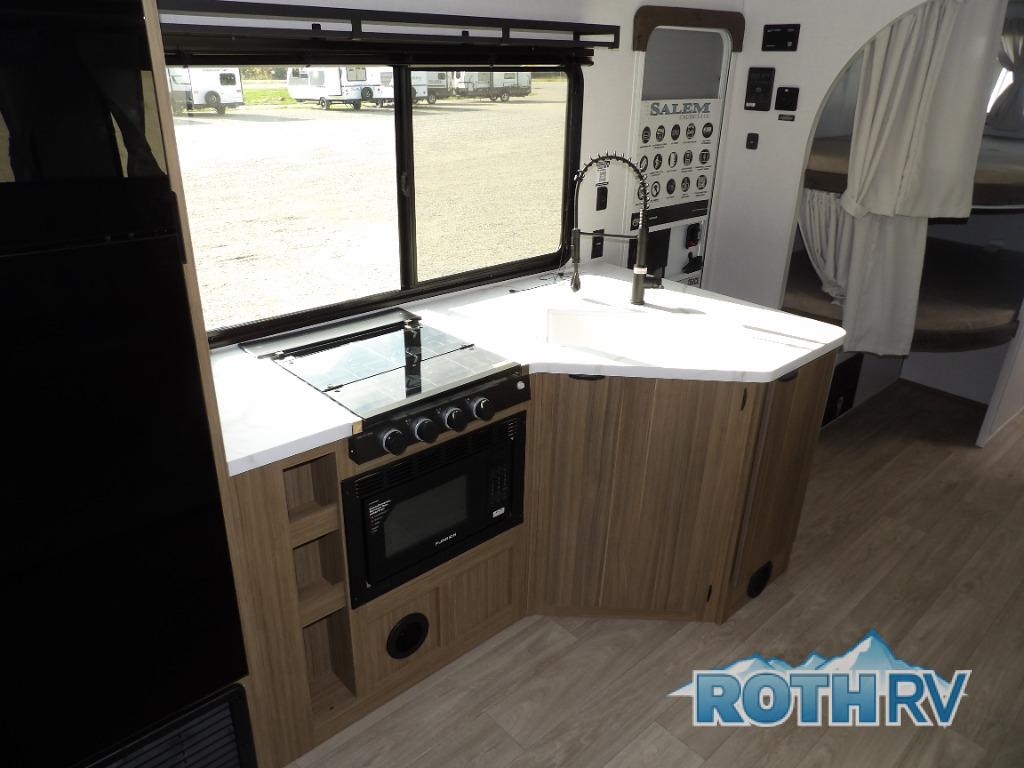 The Salem Cruise Lite travel trailers and toy haulers are value-minded units packed with great camping features! There are a variety of floorplans to choose from between two different regions. The enclosed Accessibelly will help protect against the elements and debris during transport, and the exterior retro/metal redesign is sure to be eye-catching! There are stylish roller shades inside, along with updated backsplash, elegant curtain rods and curtains, plus many more interior comforts! Choose a Salem Cruise Lite today for quality and value!