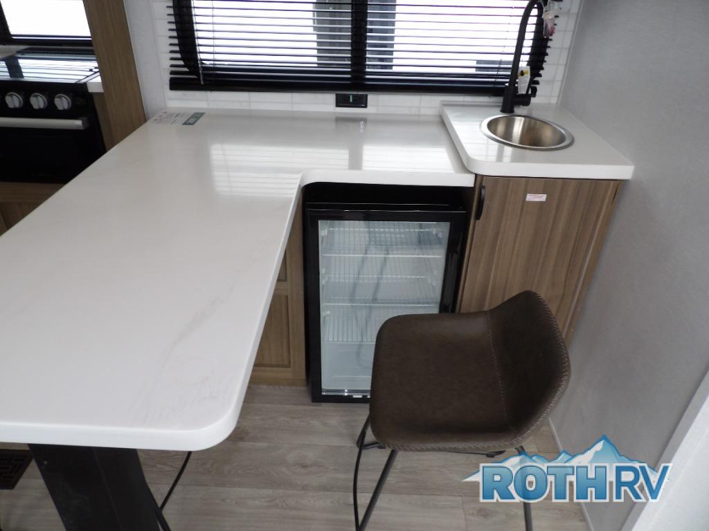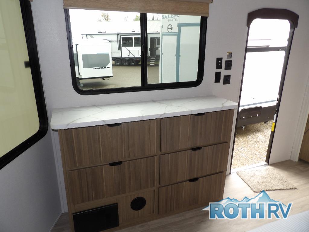 The Forest River Salem Villa Series destination trailer offers you an excellent space to relax in and rejuvenate your adventurous spirit! The 7' slide-out height is going to provide you with an open and spacious living area, and the heated and enclosed accessi-belly will protect your trailer from the elements. The Salem Villa Series comes loaded with upgraded designer furniture, a modern headboard redesign, stainless steel kitchen appliances, adjustable texture roller shades and enhanced floating shelves. There is also a few new features, including JBL speakers in the interior/exterior, a 4K blade lighting, a 60K tankless water heater, and more comforts!