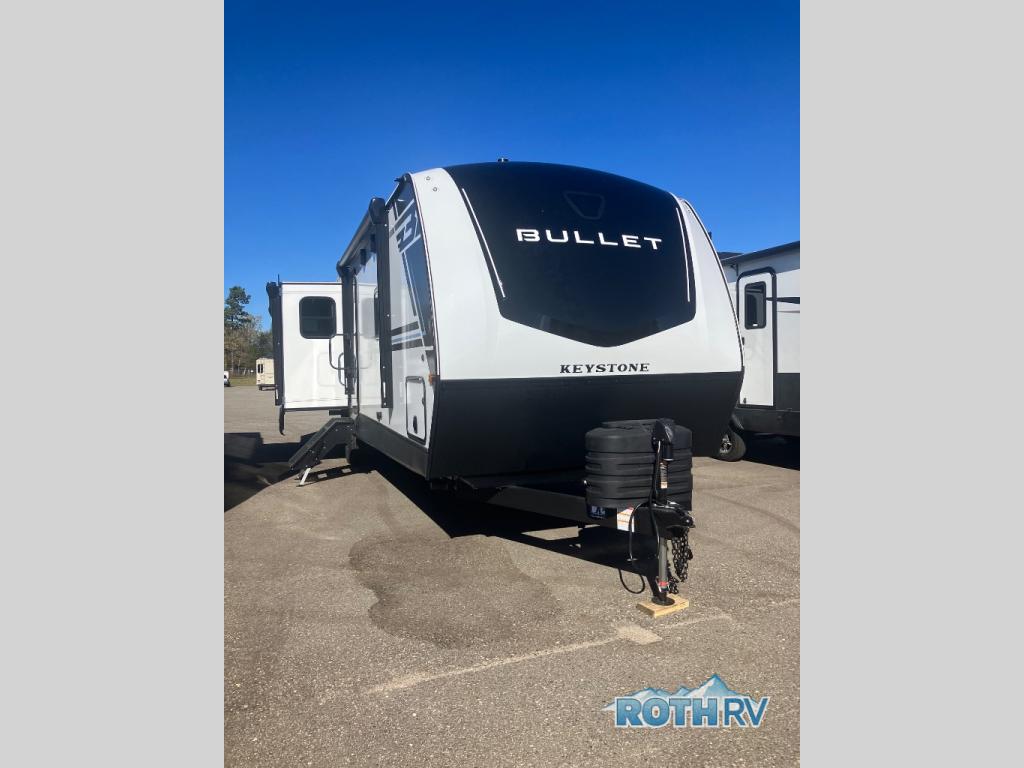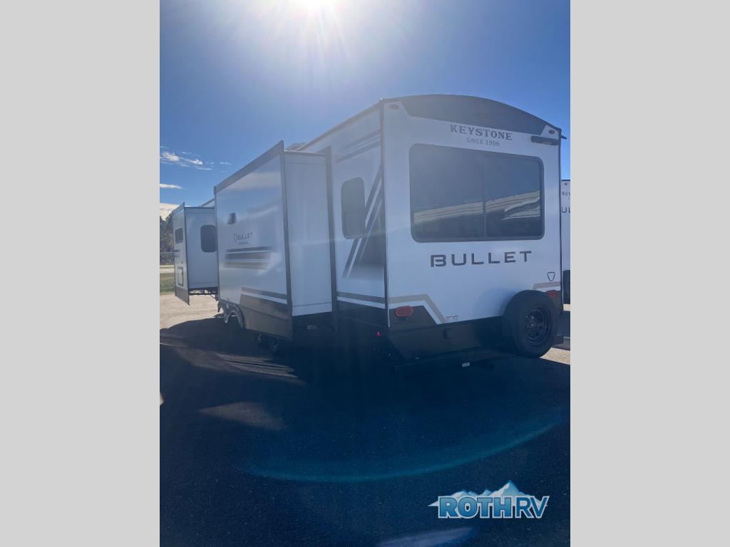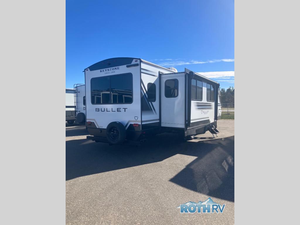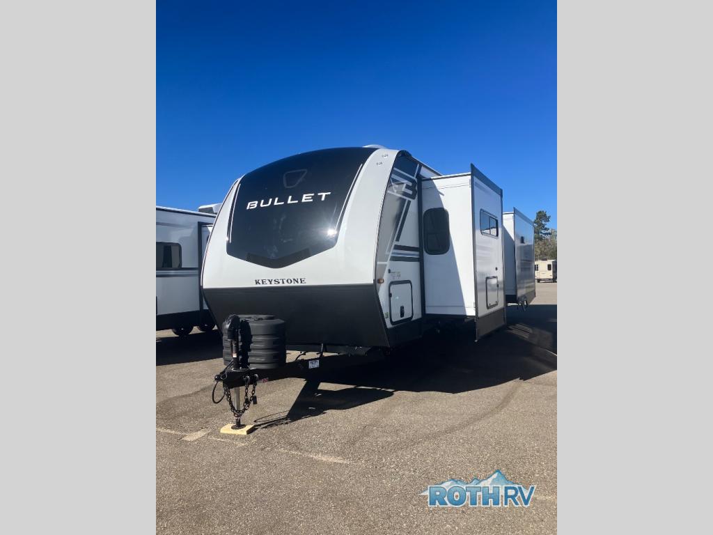 You'll be camping in style with this trailer in tow. You will wake up each morning on a king bed slide out, and there is a closet up front to easily get dressed. A wardrobe with TV prep is also found in the bedroom, along with washer/dryer prep to make wash day easier than ever. If you had guests stay over, they'll be waking up on the tri-fold sofa in the rear living area. Once everyone is ready for the day, you can make breakfast on the three burner cooktop or in the microwave oven, and there is a 10 cu. ft. refrigerator where milk and eggs can go back in. This Bullet kitchen also includes a kitchen island, a pantry, plus a hutch for ample storage space!