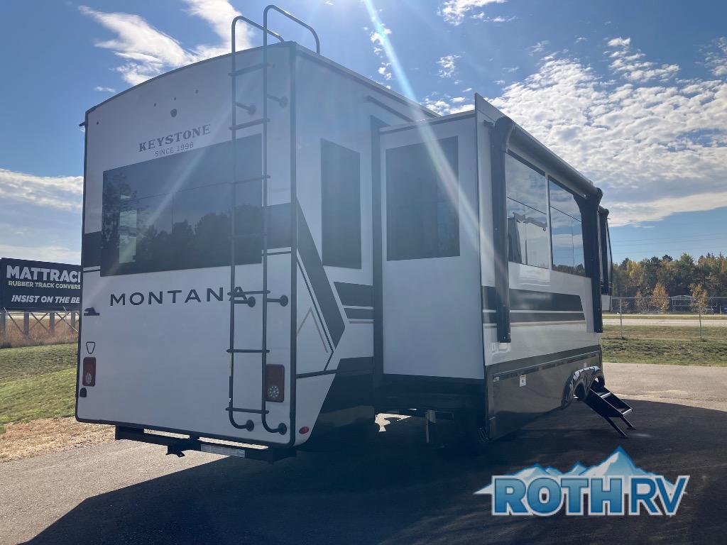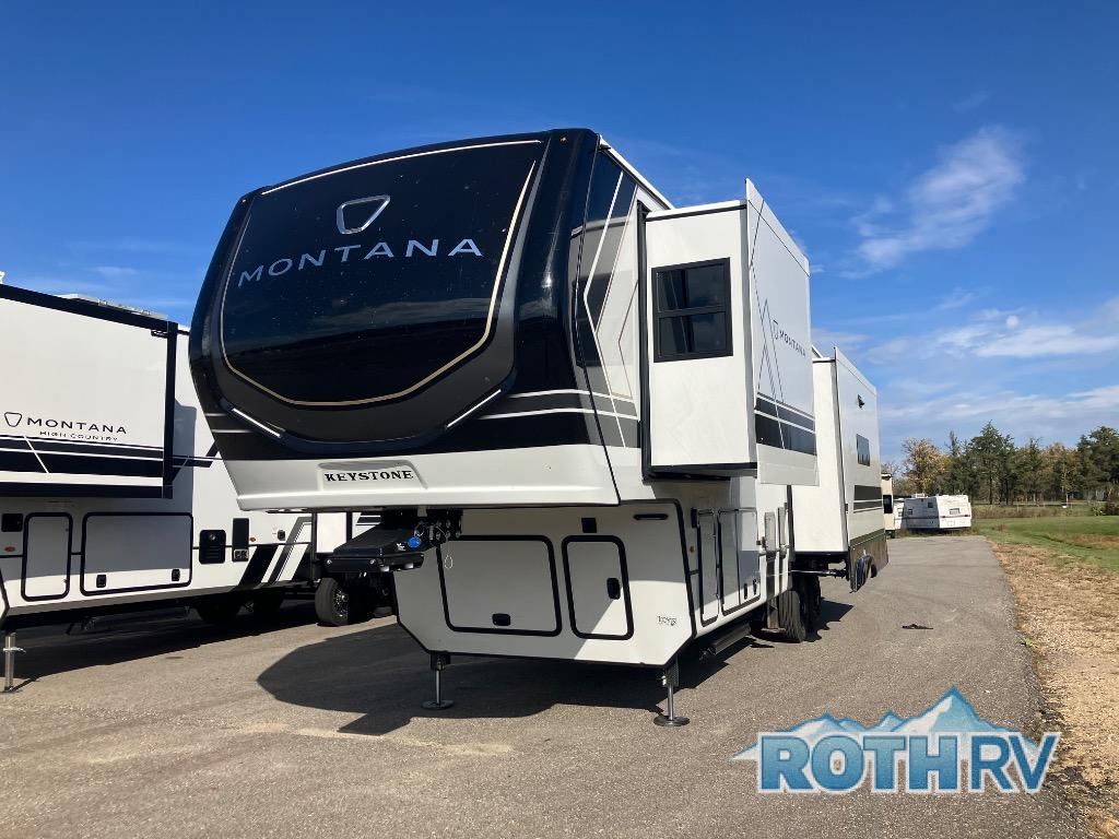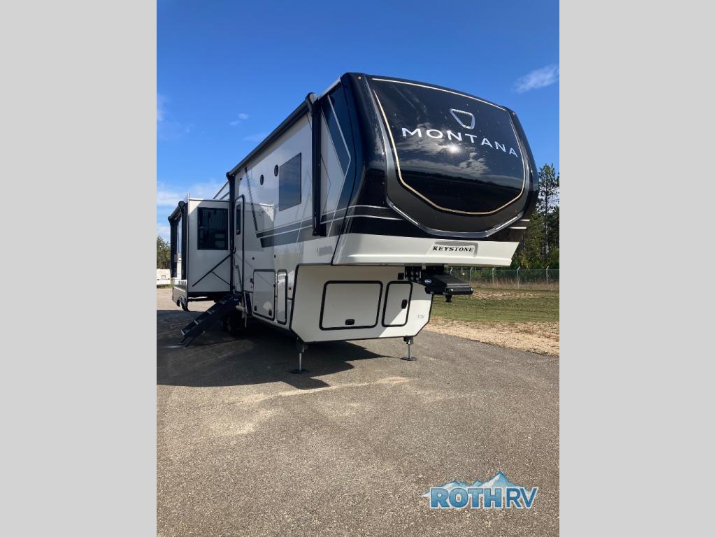 Enjoy luxury, innovation, and the outdoors in any one of Montana's finest fifth wheels. Each set the standard with exceptional features, and exciting factory installed options to provide you a great home on the road. Keystone's 12" I-beam chassis with z-frame technology provides a strong and durable foundation to your fifth wheel, and the four season living package will help extend your camping season. A few other construction features you will appreciate include a MORryde CRE3000 suspension, a fully walkable roof with an alpha seamless TPO membrane system, and 4k square frameless tinted safety glass windows. Each feature stylish interiors with two decor choices paired with beautiful hardwood cabinetry, Beauflor vinyl flooring throughout, central vacuum, plus a La-Z-Boy furniture package for all-around comfort!