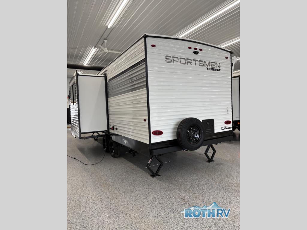 With any Sportsmen Select travel trailer by KZ, you will enjoy premium features at an affordable price, making them perfect for rookie RVers! Each model is constructed with an aerodynamic front profile with a smooth metal front for better fuel efficiency, and the nitrogen filled tires and power tongue jack will make towing easier than ever. There are is also a Key-Alike system for entry and baggage doors to keep your belongings secure, plus backup camera prep and solar roof prep means you can easily add these features to make camping that much smoother. An omnidirectional HDTV antenna with Wi-Fi prep will give you the option to stay connected as you camp, and a multi-media sound bar stereo with Bluetooth, HDMI and USB charge will ensure you'll never go bored on rainy days. The interior of these travel trailers include seamless countertops with a deep undermount stainless steel kitchen sink, a black residential kitchen faucet, wider pocket/passage doors, and residential grade linoleum.