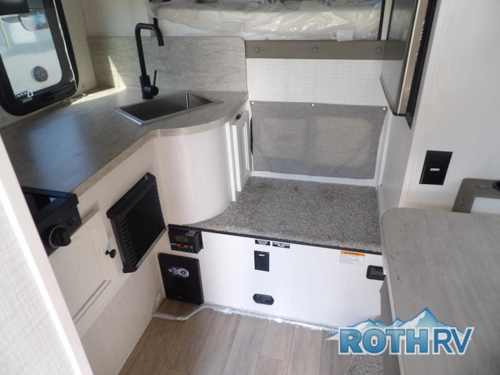 This hard side truck camper is perfect for your 1/2 ton truck with a 5'6" bed up to an 8' bed! After you've found your campsite, prepare lunch in the kitchen, and you can dine at the 60" x 22" jackknife sofa with a table. The wet bath on board will allow you to stay clean throughout your trip, and the 66" x 75" queen bed up front will provide a great night's rest. This model also includes storage space by the bed so you can bring along your books and valuables.