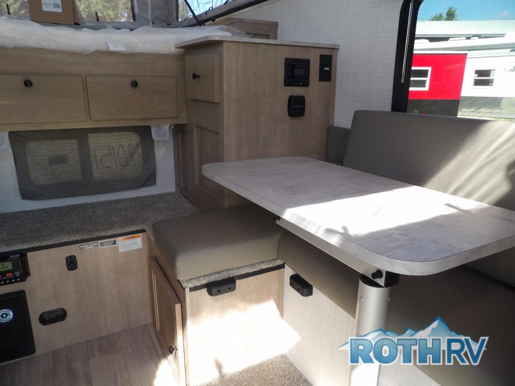 Grab your honey and head to your favorite camping spot in this cozy truck camper. If you have a 1/2 ton truck with a 5' 6" bed up to an 8' bed, it'll be perfect for you. The two burner cooktop allows you to cook your own meals each day, and the three-way refrigerator can store your perishables. There is a U-shaped dinette for two to three people and a wardrobe to store your clothes. This model also includes two foot lockers on either side of the queen bed for your book, phone, or valuables!