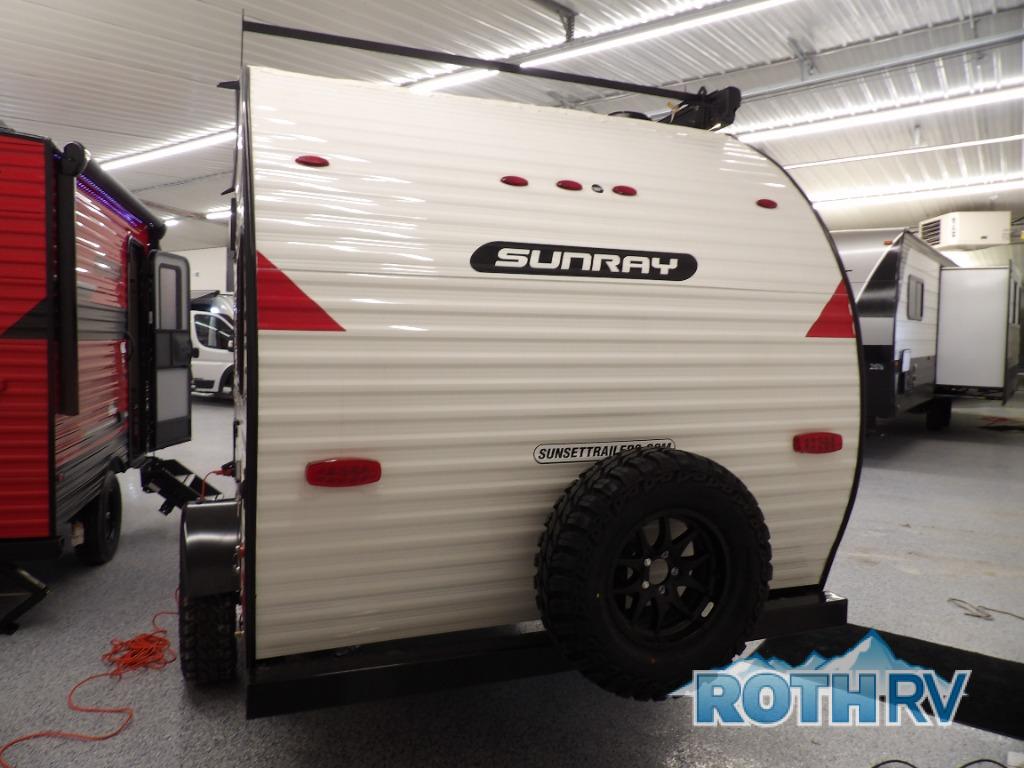 The Sunray travel trailer from Sunset Park RV is an investment that you'll be able to enjoy for many years to come! These compact trailers are effortless to tow, so you won't need fancy equipment to have fun at the campsite. The Sunray is built upon a powder-coated steel chassis, and it has a one-piece PVC roof membrane to keep the RV protected. You'll find radial tires, a spare tire with carrier where available, and .024" aluminum siding on each model. You'll be able to remain comfortable when staying indoors thanks to the A/C and furnace. Another way that your camping experience will be elevated is with the Confidence Package which comes with a 100 W solar kit w/ controller installed, a roof rack, and more!
