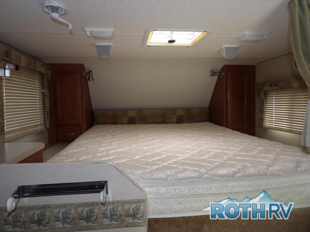 Lance Truck Camper w/Rear Wet Bath Including Shower & Toilet, Rear Dinette, 3 Burner Range, Wardrobe, Double Kitchen Sink, Queen Cabover Bed, Fold-Down Bunk, Refrigerator and More. Extended Cabover Only.