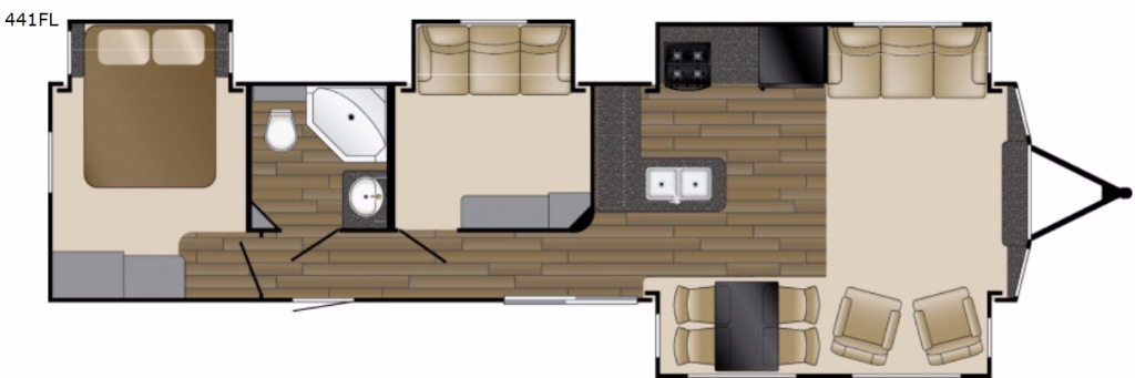 With triple slide outs, a front kitchen layout, and all the conveniences you need to enjoy your extended stay camping, the Heartland Resort 441FL is the ideal destination trailer.