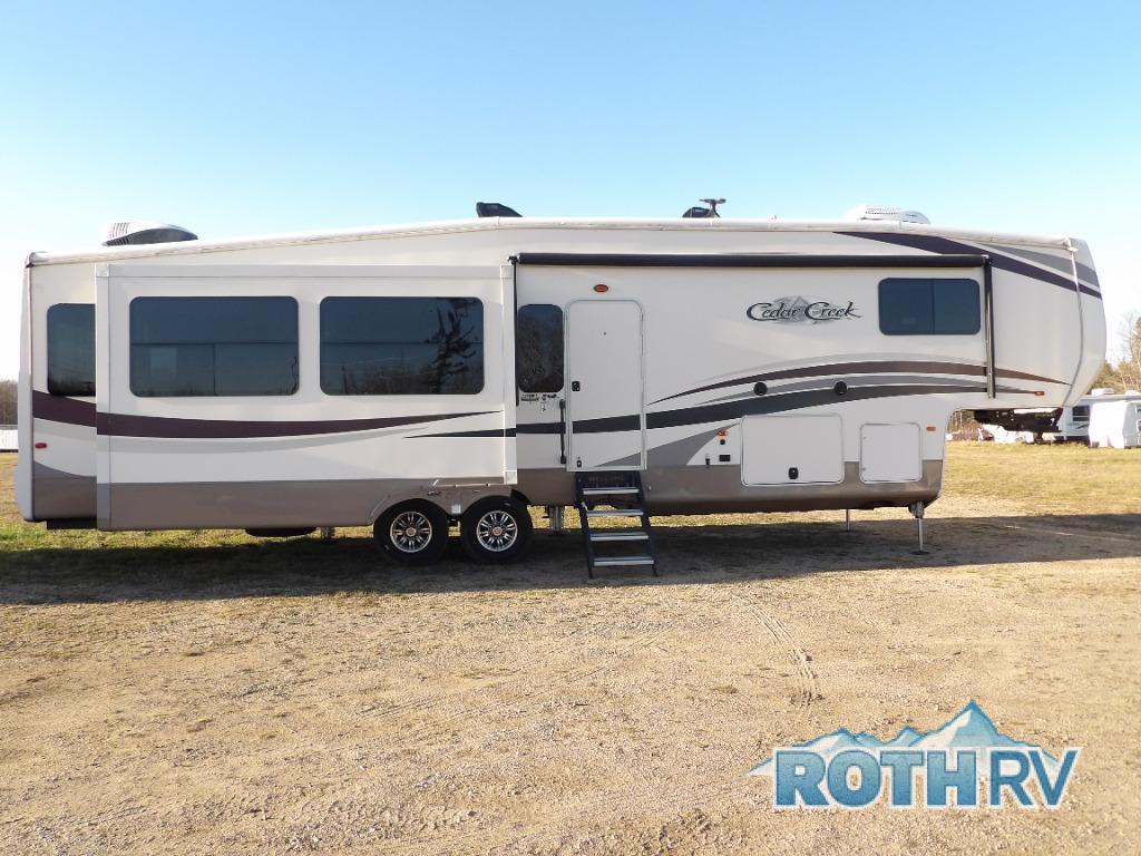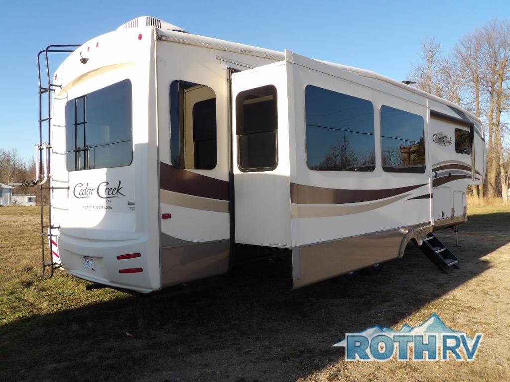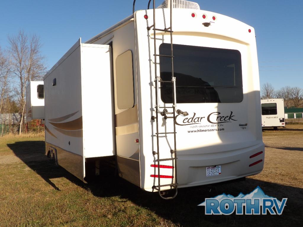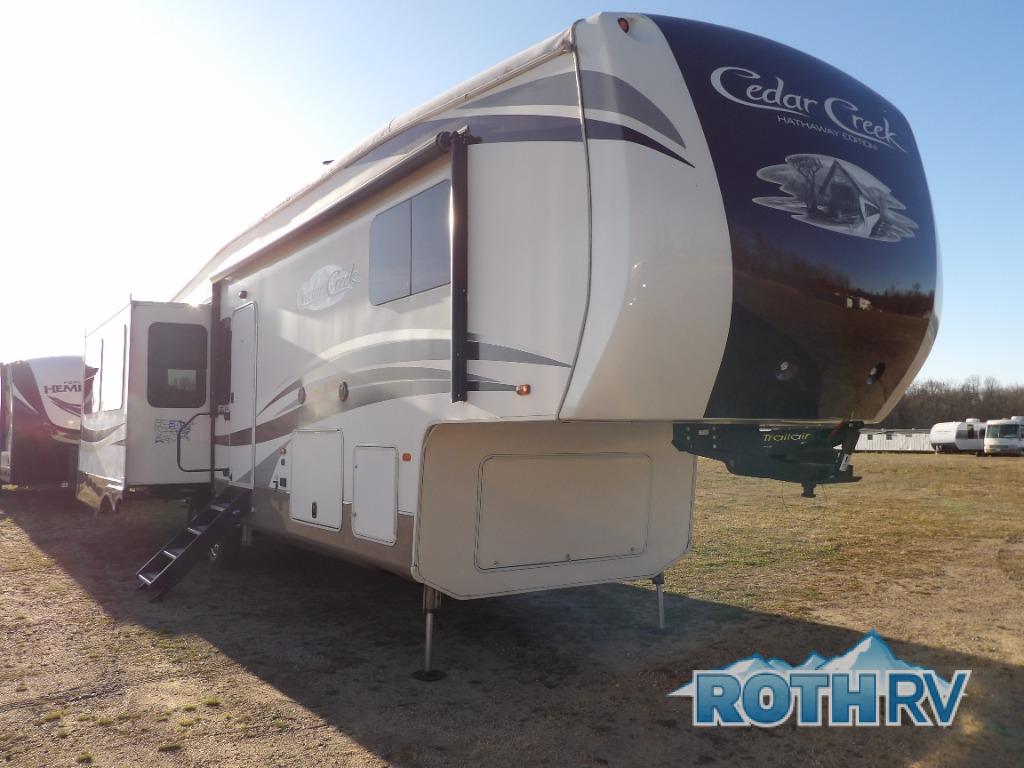 This triple slide out Cedar Creek Hathaway Edition 36CKTS fifth wheel by Forest River offers spacious living accommodations and all the comforts of home.