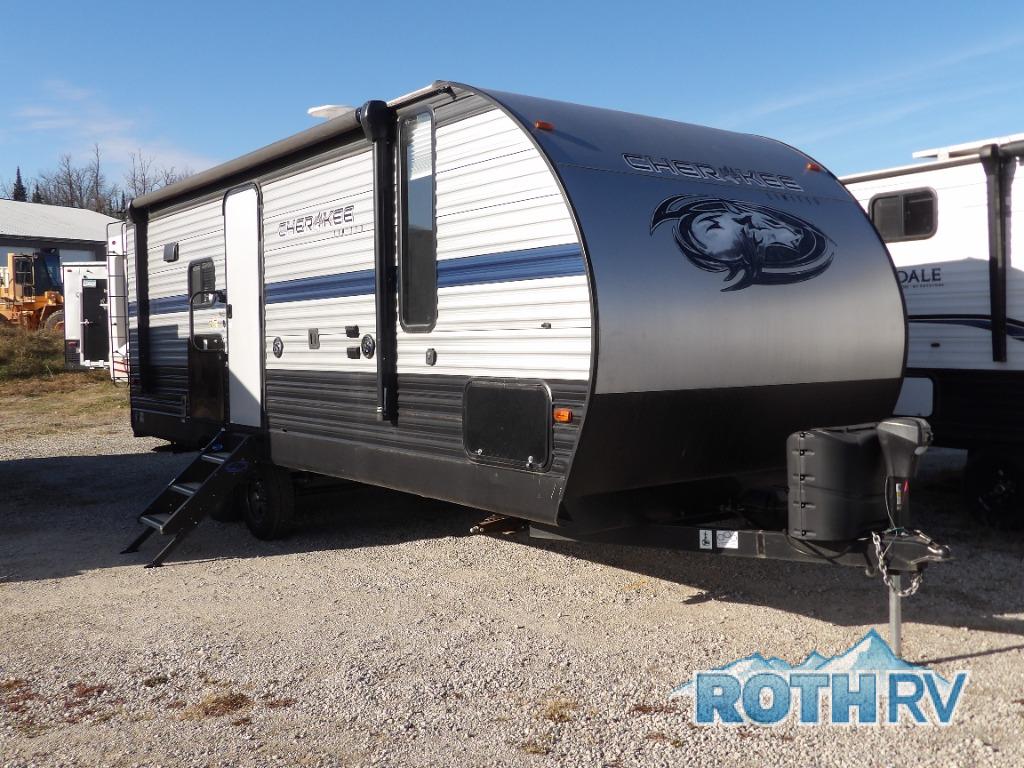 No matter which Cherokee model by Forest River you choose, you can rest assured knowing that each unit is built to provide you with great value, comfort, and style making it easy to get up and go as soon as the urge strikes. Each model features two-toned exterior metal and upgraded graphics, a one-piece rubber roof with 3/8" walkable roof decking, and a front stone guard for protection. Inside of each unit, you will enjoy comfortable seating and mocha-stained shaker-style cabinets. There are also a variety of optional packages available that will provide additional features, like the Base Camp Package, the Campfire Package, and the Limited Package. So when the open road calls, answer with your very own Cherokee travel trailer or toy hauler in tow!