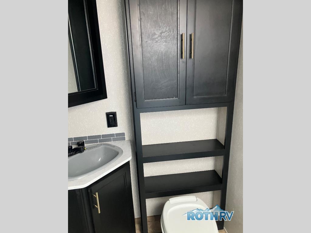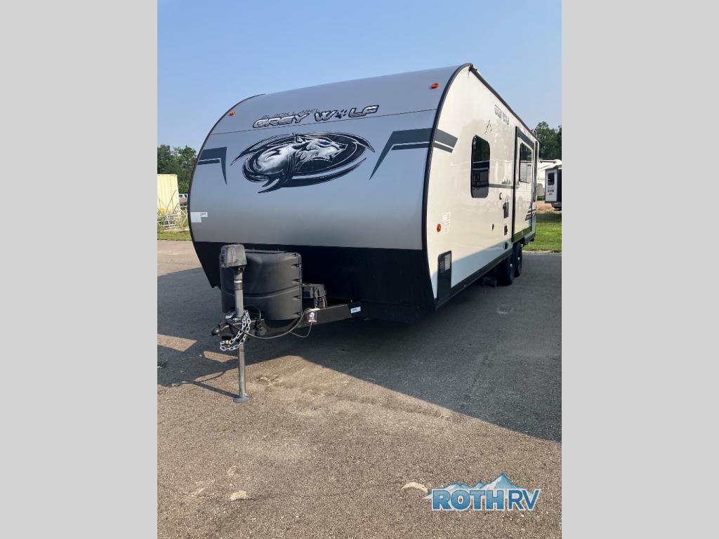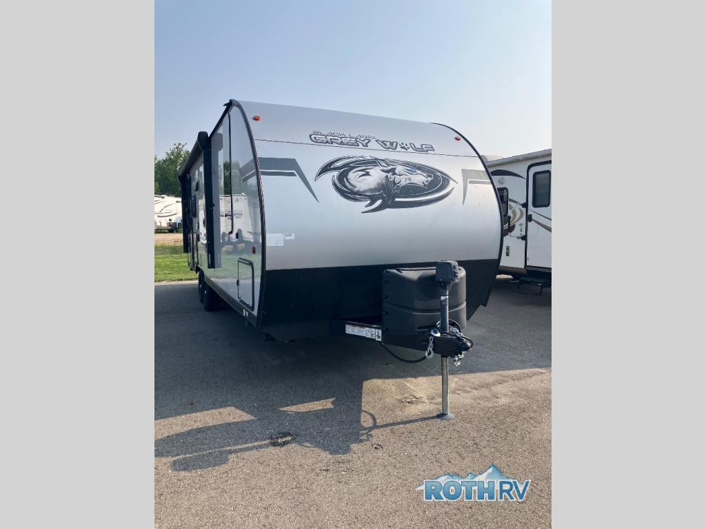 This Cherokee Grey Wolf Black Label travel trailer is perfect for your small family and will leave you planning your next outing before you are back from your current weekend away! You will find all of the comforts you need with plenty of livable space including a U-shaped dinette slide. There is also a sofa for more seating when company arrives, plus there are end tables on either side to prevent spills. A spacious walk-through bath leads to a front private bedroom where you will enjoy a great night's rest on a comfortable queen-size bed. You will find ample storage for clothing in the wardrobes that are above handy nightstands for your personal things. There are even lights mounted above the bed on each side which makes it easy to read a couple of chapters before drifting off to sleep.