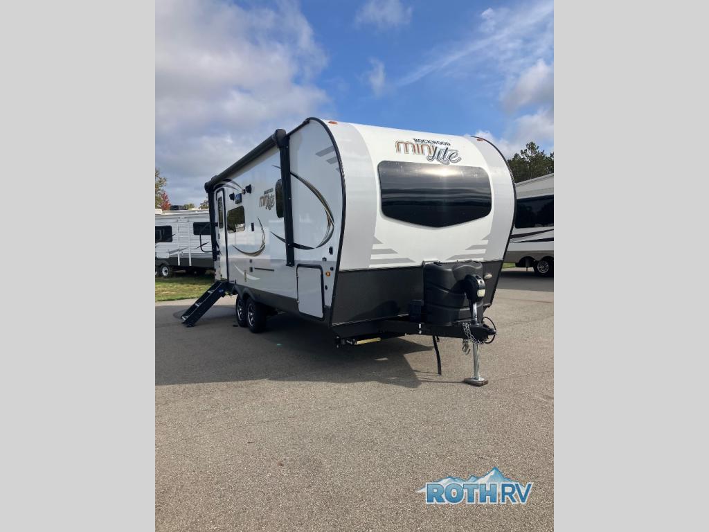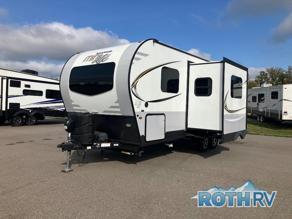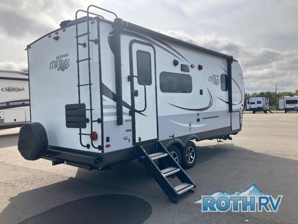 The easy-to-tow, lightweight Rockwood Mini Lite travel trailers by Forest River are the adventurer's dream come true. The six sided aluminum frame, fully laminated one-piece walkable roof, and painted fiberglass front cap with clear coat will provide a strong, durable unit that will last through years of memories and fun. You will appreciate many convenient features, such as the Maxxair fan with a cover, the back-up camera prep, and the Teton All In One WiFi booster with LTE prep and an antenna if you need to get some work done while you're away from home. Each model includes hardwood cabinet doors, a monitor panel switch with the OneControl app, and solid surface kitchen countertops. You will stay entertained on those rainy days with the multizone stereo with DVD, CD, AM/FM and Bluetooth control, and there are outdoor speakers so you will be the life of the campground. Choose your favorite Rockwood Mini Lite layout today!
