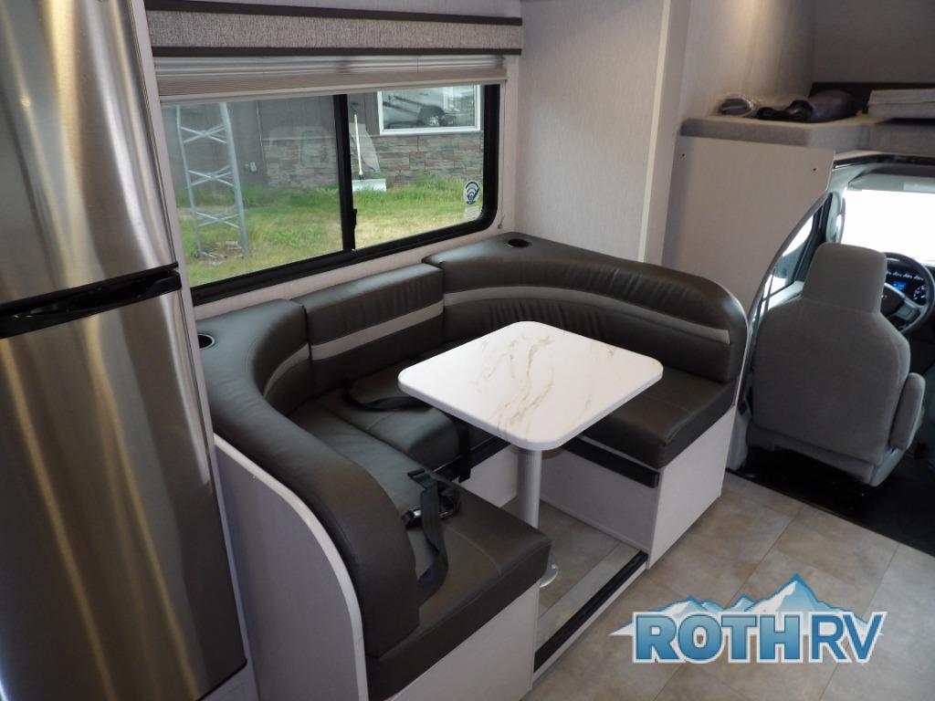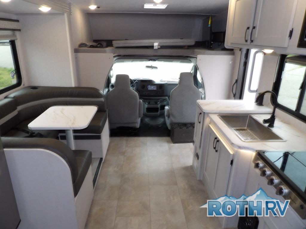 Enjoy a great escape in this motorhome! With a 60” x 80” queen bed and a 57” x 95” bunk over the cab, there’ll be plenty of space for everyone. Eat your meals at the spacious U-dinette or use it to spread out and play a board game once the dishes are cleared away. The kitchen rivals your home setup with a pantry, residential microwave, and stainless steel farmer's kitchen sink with a high-rise kitchen faucet. More storage is available in the bedroom with wardrobe shelves and a roomy underbed storage area. This model also includes the CRV Supersprings Ride with heavy duty stabilizer bars, chassis electronic stability control, SumoSprings front shock absorbers, and more!