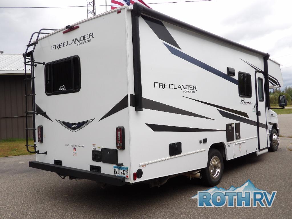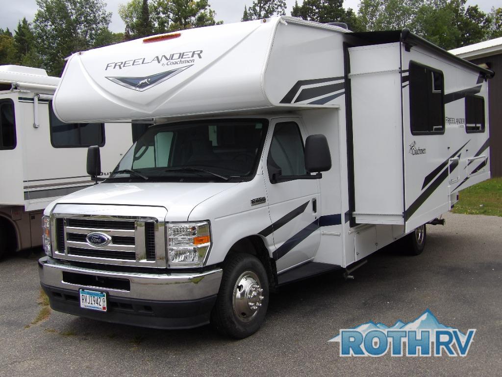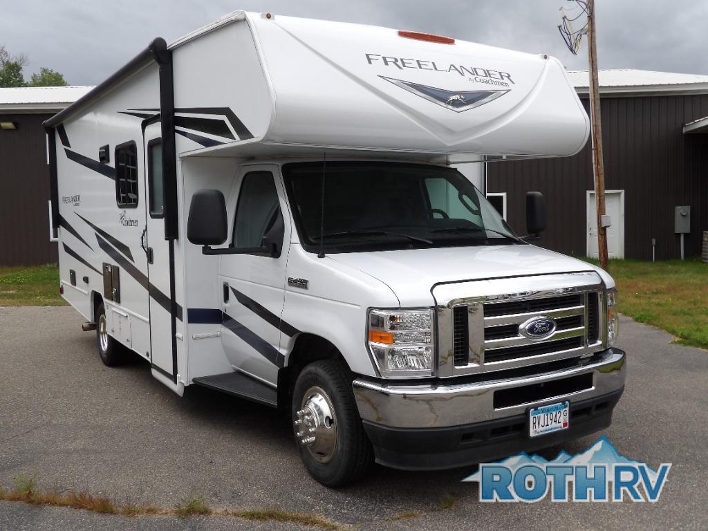The Freelander Class C gas motorhome by Coachmen is a wonderful choice for anyone looking to get out on the road. A wide variety of floorplans and features offers something for everyone. The Azdel composite sidewalls and CrossFlex PVC polyester reinforced roof material provide a solid structure to enjoy all your trips. Conveniences like an over-door magazine rack with an HDMI and charge station and reclining cockpit seats are standard, along with a rear color backup camera, a premium showerhead and faucet, and one-piece thermofoil countertops. You might like to add the optional Platinum Edition that comes with sideview cameras, upgraded running boards, a convection microwave, and many more features!
