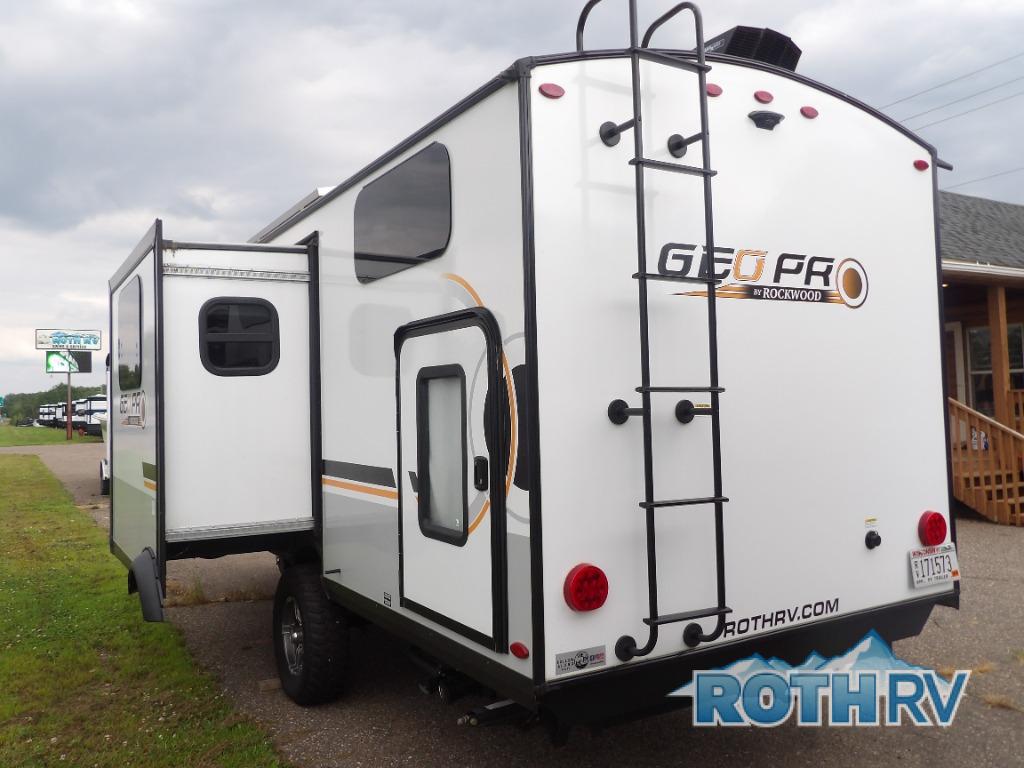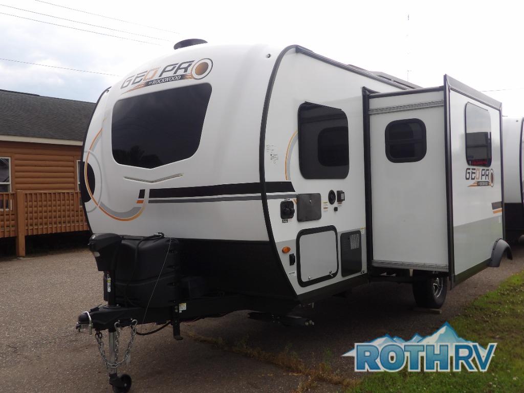 The Rockwood GEO Pro travel trailers and toy hauler by Forest River are ready for all your adventures. The interior and exterior Azdel construction, along with the vacuum laminated roof and walls provide a durable trailer, and the Dexter torsion axles with aluminum wheels make towing easier than ever. There are many convenient amenities, like the 13,500 BTU A/C, the Bluetooth system control panel, and the all-in-one Teton HD TV/WiFi/FM antenna with LTE prep. Each model includes frameless windows, fabric valances and roller shades, and a modern interior that will make you feel right at home. Everything you're looking for in your next RV is in a Rockwood GEO pro by Forest River!